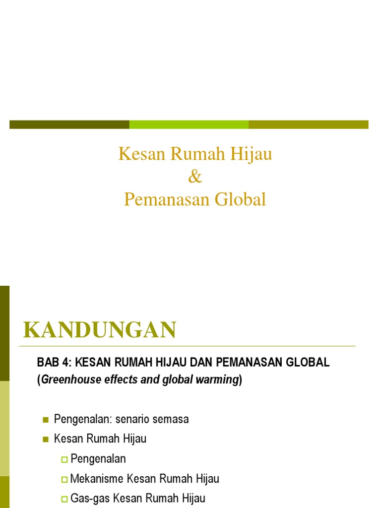 Kesan rumah hijau MAKSUD KESAN RUMAH HIJAU Kesan rumah hijau adalah fenomena penigkatan suhu atmosfera bumiIni disebabkan oleh haba yang diserap dan. Gas rumah hijau yang berlebihan menyebabkan terlalu banyak haba yang diperangkap menjadikan bumi semakin panas. PENGENALAN Kesan rumah hijau merupakan kesan pencemaran udara.